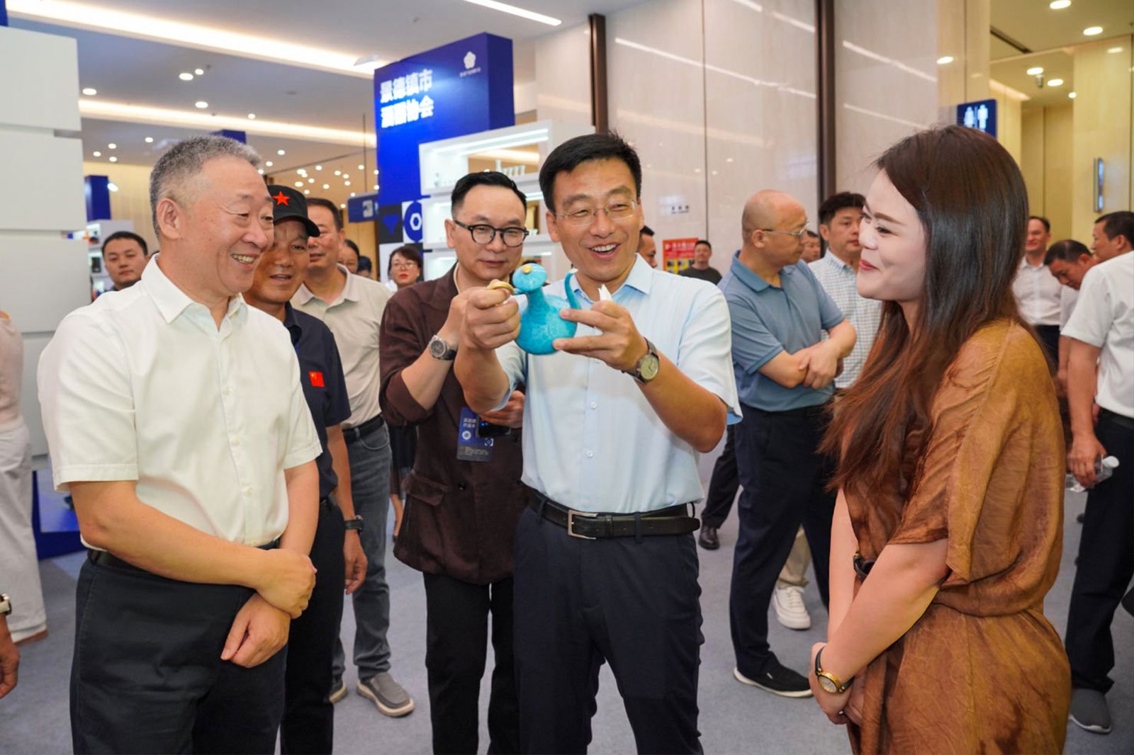 (宋书玉理事长,陈克龙市长莅临91视频免费播放展位,鉴赏“流光”酒具)