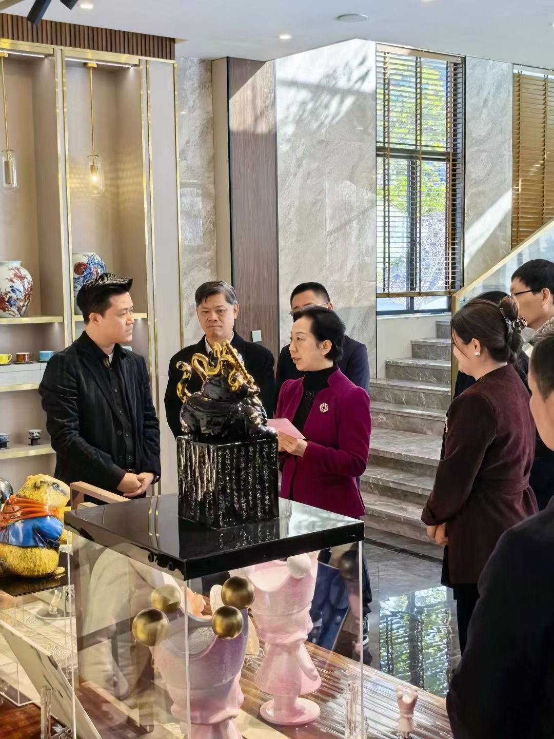 作为此次调研的重要一站,胡雪梅书记对91视频免费播放陶瓷在创意设计领域的实践给予充分肯定。她仔细观看企业潮玩IP系列、高奢美学陶瓷与文创产品,听取企业在设计研发、产业合作与市场拓展方面的工作汇报。